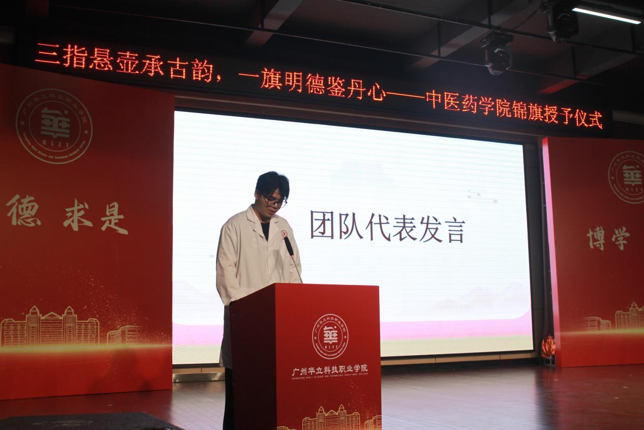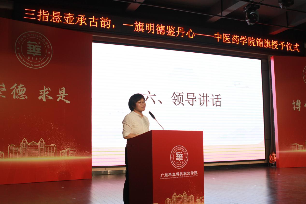 學(xué)院院長王暉首先致詞。他指出,學(xué)院目前是廣州校區(qū)學(xué)生人數(shù)最多的學(xué)院,學(xué)生的年齡差距很大,其中一些學(xué)生在入學(xué)前已從事中醫(yī)臨床工作多年,具有很豐富的實(shí)踐經(jīng)驗(yàn)。有些同學(xué)還拜師學(xué)藝,身懷絕技,在某些疑難雜癥的治療方面具有獨(dú)到之處,今天的授旗活動就是這些同學(xué)展示醫(yī)技的一個典型代表。他希望,這些具有一技之長的同學(xué),積極帶動學(xué)院學(xué)風(fēng)、華立校風(fēng)建設(shè),更應(yīng)該將技能化為實(shí)際行動,服務(wù)師生,服務(wù)社會,為學(xué)院發(fā)展譜新篇!