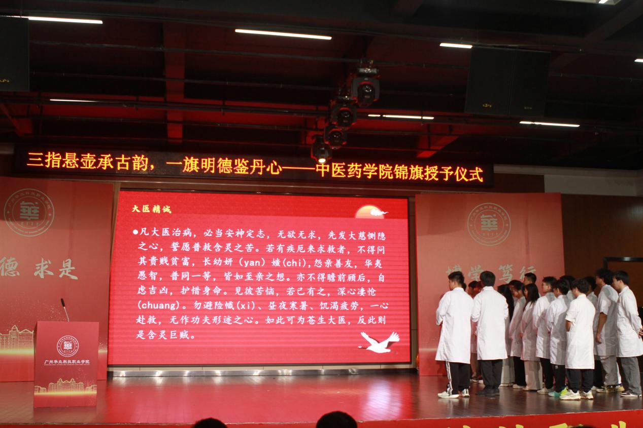 會(huì)議伊始,我院創(chuàng)新創(chuàng)業(yè)團(tuán)隊(duì)七田堂為大家頌讀《大醫(yī)精誠(chéng)》。團(tuán)隊(duì)全體成員莊嚴(yán)肅立,一字一句間,重溫古代醫(yī)家對(duì)醫(yī)德的不懈追求,傳承“精”于專(zhuān)業(yè)、“誠(chéng)”于品德的大醫(yī)精神,為整場(chǎng)大會(huì)奠定了弘揚(yáng)醫(yī)德、提升醫(yī)術(shù)的基調(diào) 。