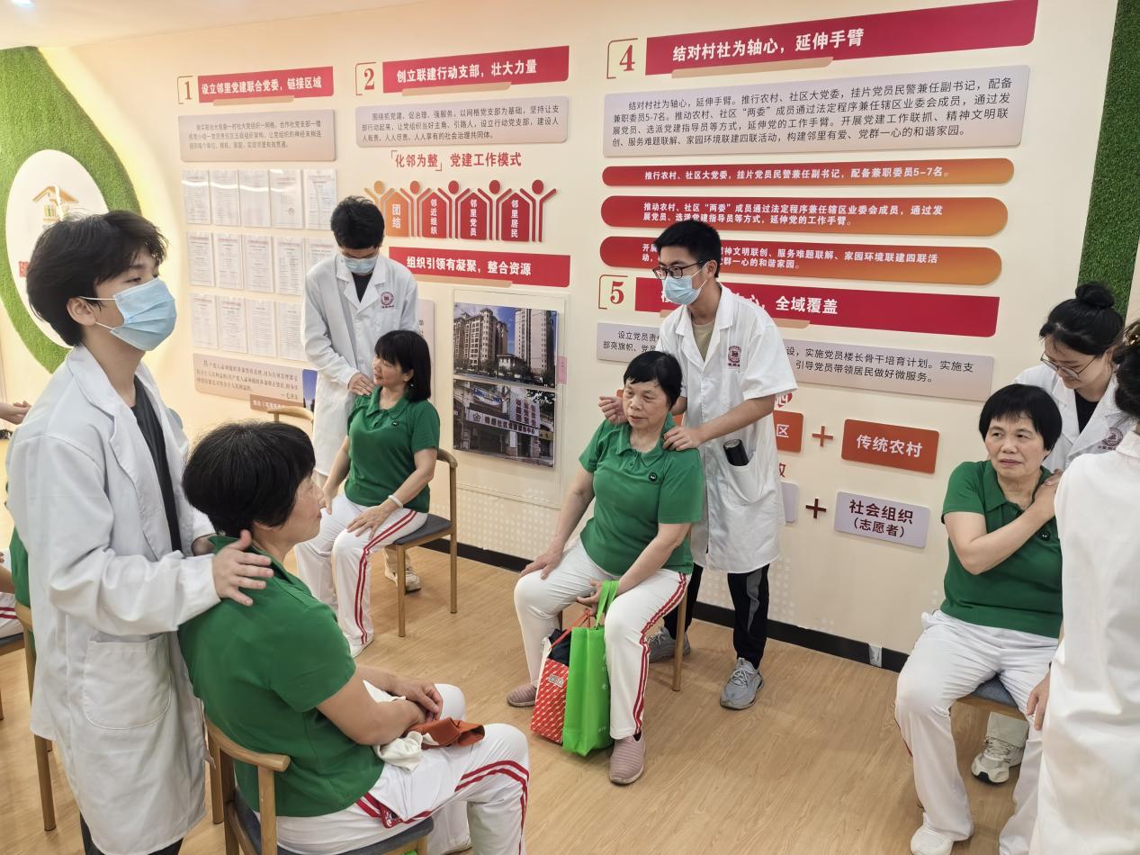 除了血壓測(cè)量,我院師生充分發(fā)揮專業(yè)特長(zhǎng),為社區(qū)居民提供中醫(yī)脈診、推拿按摩等特色診療服務(wù),并針對(duì)常見慢性病、亞健康狀態(tài)等問題給予個(gè)性化建議。志愿者們還向居民普及中醫(yī)藥養(yǎng)生知識(shí),演示八段錦、穴位按摩等保健方法,倡導(dǎo)“未病先防”的健康理念。帶隊(duì)潘菽弢博士表示:“中醫(yī)藥在慢病調(diào)理和健康管理方面具有獨(dú)特優(yōu)勢(shì),我們希望通過這樣的活動(dòng),讓更多人了解中醫(yī)、受益于中醫(yī)。”