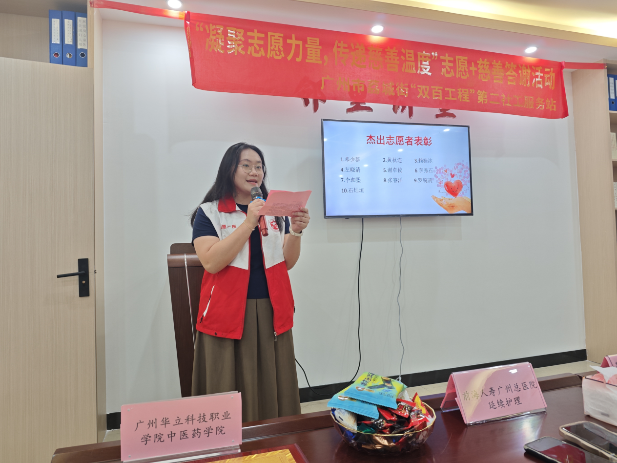 廣州市荔城街第二社工服務(wù)站、荔城街錦繡社區(qū)居委會(huì)聯(lián)合舉辦“凝聚志愿力量,傳遞慈善溫度”志愿+慈善答謝活動(dòng)的表彰儀式中,我院榮獲“愛心公益單位”稱號(hào),體現(xiàn)了我院在公益事業(yè)和社會(huì)責(zé)任方面的突出貢獻(xiàn),這一稱號(hào)不僅是對(duì)學(xué)院公益成果的認(rèn)可,也彰顯了中醫(yī)藥行業(yè)“仁心濟(jì)世”的傳統(tǒng)精神,有助于提升社會(huì)對(duì)中醫(yī)藥價(jià)值的認(rèn)知,激勵(lì)更多機(jī)構(gòu)參與公益事業(yè)。