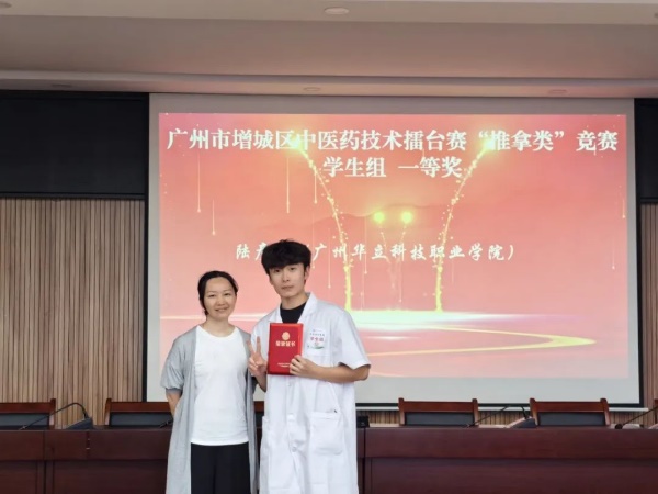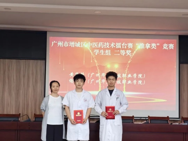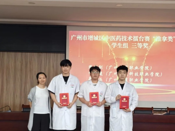 2025年5月20日,“廣州市增城區(qū)中醫(yī)藥項(xiàng)目技術(shù)擂臺(tái)賽(推拿類(lèi))”在廣州增城區(qū)派潭鎮(zhèn)中心衛(wèi)生院舉辦。來(lái)自廣東省增城區(qū)各基層醫(yī)療衛(wèi)生機(jī)構(gòu)、廣州華立科技職業(yè)學(xué)院及廣州華商職業(yè)學(xué)院的60多名參賽選手以飽滿(mǎn)的熱情、超高的專(zhuān)業(yè)水平完成競(jìng)賽。經(jīng)過(guò)理論知識(shí)考核和推拿技能考核兩場(chǎng)的激烈角逐,由我校教師薛嘯指導(dǎo)的中醫(yī)學(xué)專(zhuān)業(yè)陸彥合、黃華科、謝政行、李銘健4名同學(xué)憑借出色的表現(xiàn),榮獲個(gè)人賽一個(gè)一等獎(jiǎng)、兩個(gè)二等獎(jiǎng)和一個(gè)三等獎(jiǎng)。