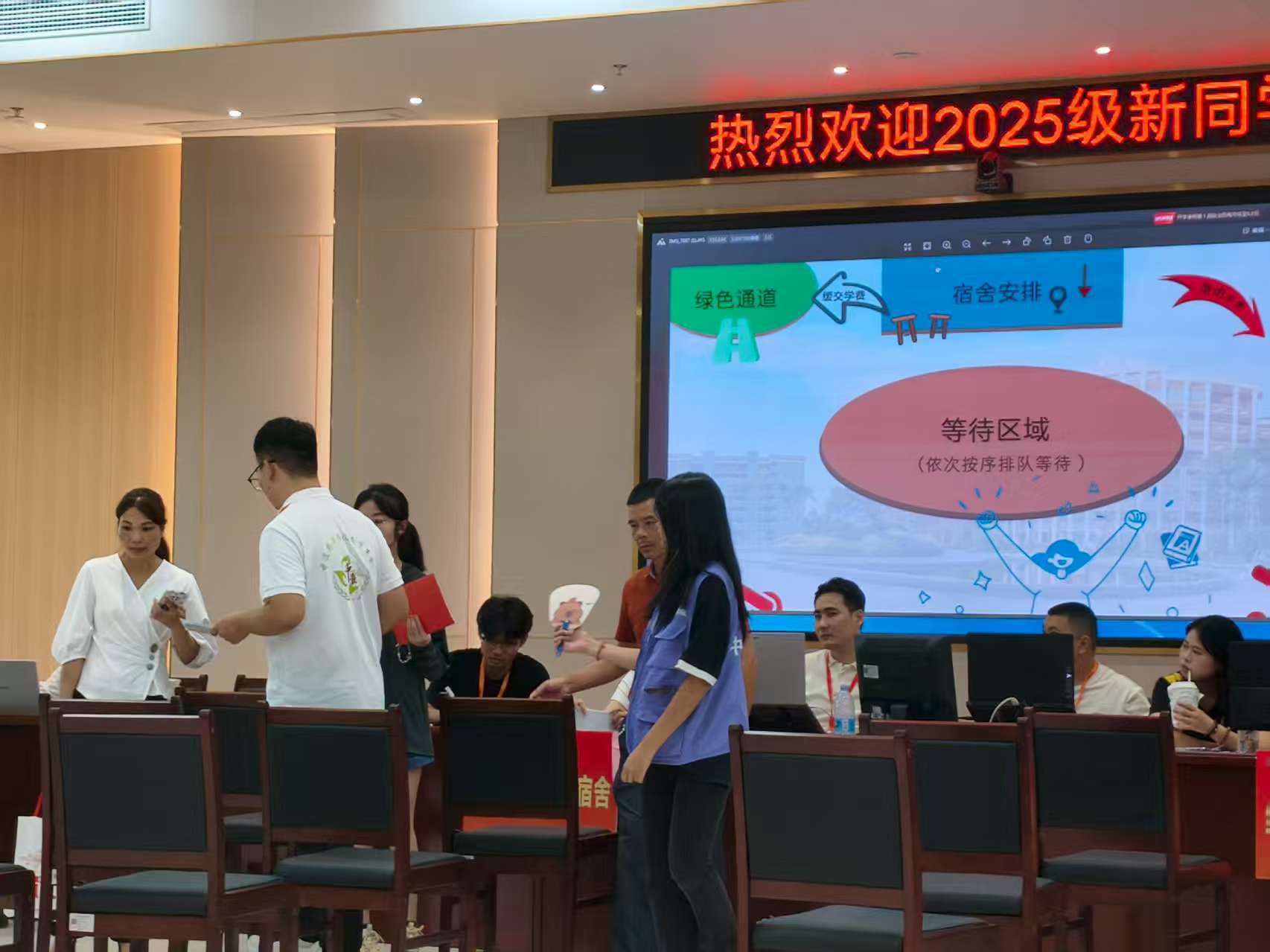 迎新現(xiàn)場,各項工作有條不紊。報到點前,志愿者們以最飽滿的熱情迎接新同學(xué)的到來。志愿者們分工明確,他們耐心細(xì)致地解答疑問、辦理手續(xù)、引導(dǎo)路線,幫助新生們快速完成身份核驗、住宿登記、專業(yè)咨詢等各項入學(xué)流程,學(xué)校還設(shè)立了“綠色通道”服務(wù)站,為家庭經(jīng)濟困難學(xué)生提供一站式咨詢服務(wù),確保每位學(xué)子都能無憂入學(xué)。