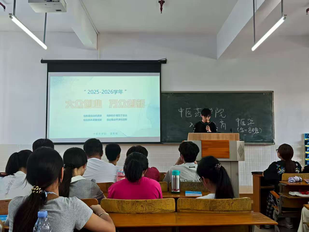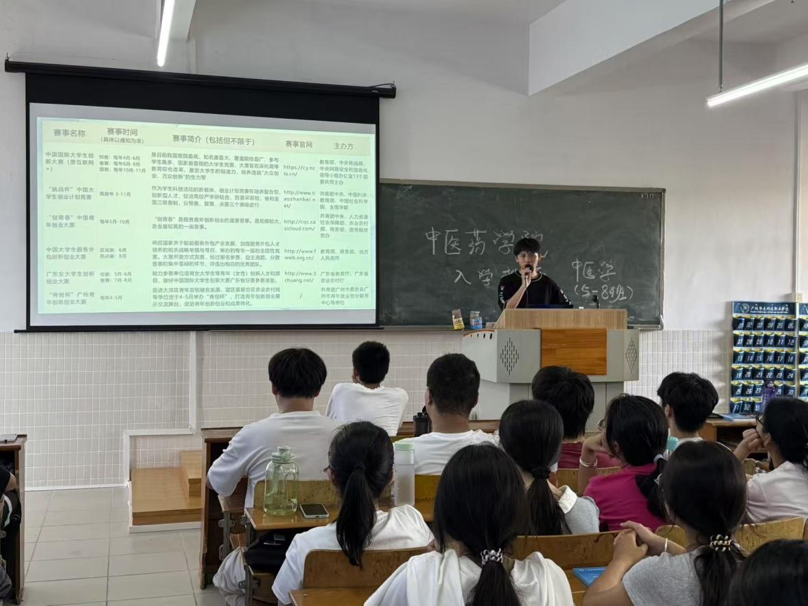 2025年9月4日下午,云浮校區(qū)中醫(yī)藥學(xué)院在一教409召開2025級新生創(chuàng)新創(chuàng)業(yè)競賽宣講會,由溫貴城老師進行宣講。`