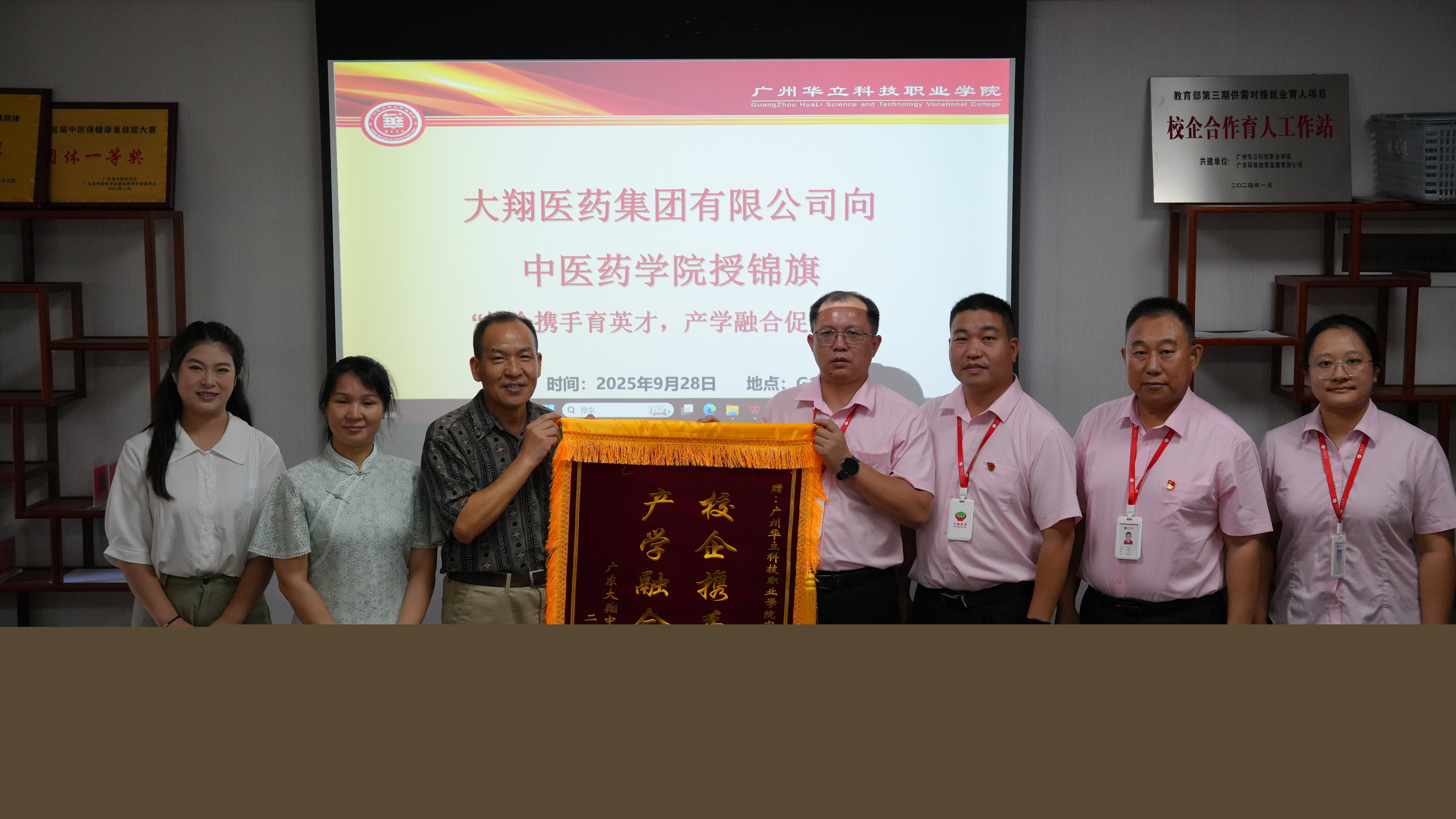 贈(zèng)旗儀式上,大翔集團(tuán)領(lǐng)導(dǎo)向中醫(yī)藥學(xué)院贈(zèng)予“校企攜手育英才,產(chǎn)學(xué)融合促發(fā)展”的錦旗,充分肯定了雙方在人才培養(yǎng)與產(chǎn)學(xué)研協(xié)同方面的積極探索。同時(shí),贈(zèng)予藝術(shù)與傳媒學(xué)院的“名師親臨傳聲樂,校企合作結(jié)碩果”錦旗,則生動(dòng)體現(xiàn)了藝傳學(xué)院在聲樂藝術(shù)指導(dǎo)等企業(yè)文化建設(shè)中發(fā)揮的重要作用及取得的豐碩成果。