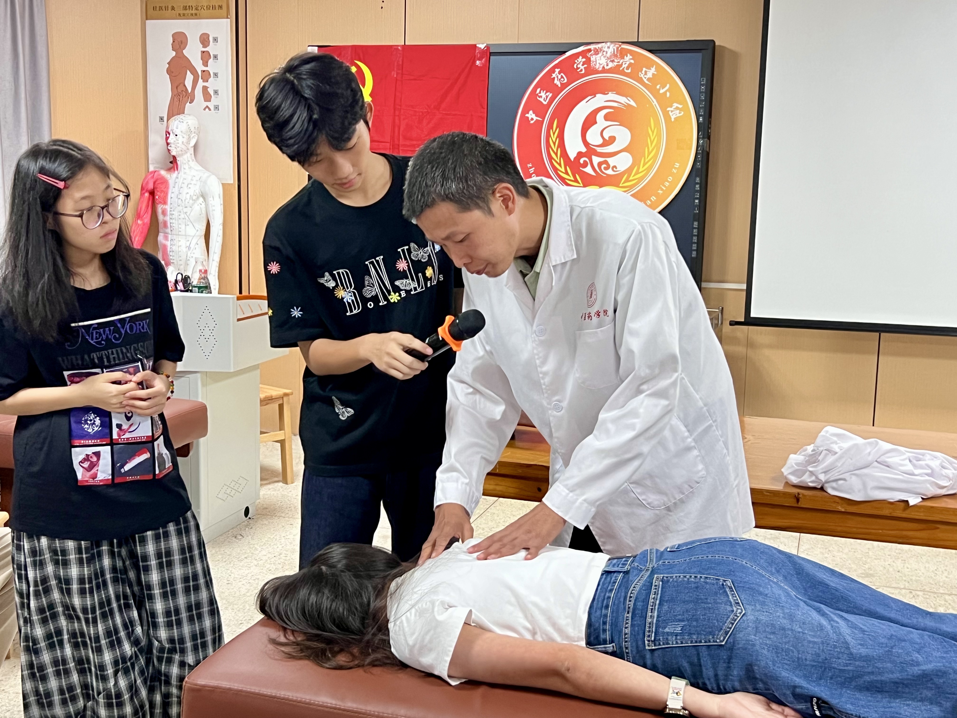 為了讓同學(xué)們能夠更加直觀地理解和感受中醫(yī)推拿的精妙之處,宿鶴揚(yáng)特意選取了幾個(gè)典型的臨床案例進(jìn)行現(xiàn)場(chǎng)演示。在演示過(guò)程中,他不僅詳細(xì)展示了各種推拿手法的具體操作步驟,還深入淺出地講解了每個(gè)動(dòng)作的發(fā)力技巧、操作要領(lǐng)以及需要注意的細(xì)節(jié)問(wèn)題。通過(guò)理論與實(shí)踐結(jié)合的方式,呈現(xiàn)中醫(yī)推拿的科學(xué)性、實(shí)用性和藝術(shù)性,讓同學(xué)們領(lǐng)略傳統(tǒng)醫(yī)學(xué)魅力。演示生動(dòng)有趣、互動(dòng)性強(qiáng),現(xiàn)場(chǎng)掌聲熱烈,展現(xiàn)同學(xué)對(duì)傳統(tǒng)技藝的濃厚興趣與高度認(rèn)可。