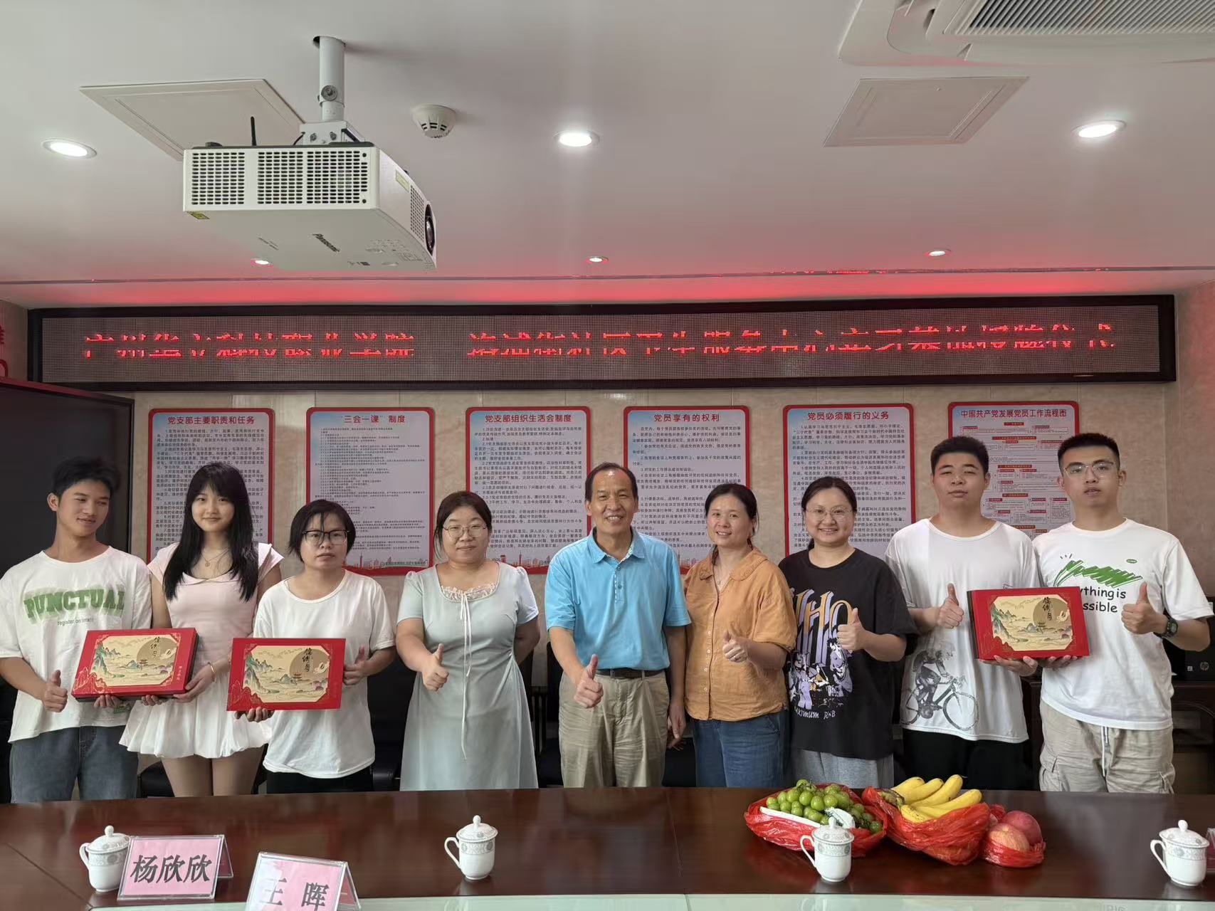 會后,學院領導老師們向同學分發(fā)了中秋慰問品,一盒盒月餅和一份份水果,承載著學校無微不至的關愛。全體人員在會議室合影留念,畫面溫馨和諧。此次慰問,讓在番禺實習的學子們深切感受到了來自母校大家庭的溫暖,增強了他們的歸屬感和職業(yè)認同感。