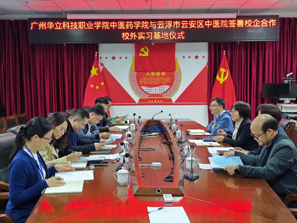 為深化產教融合、加強校企合作,推動教育教學與產業(yè)需求緊密對接,提升人才培養(yǎng)質量。2025年11月4日上午廣州華立科技職業(yè)學院副校長王洪艷、招就處副主任張雄、中醫(yī)藥學院副院長張志勇和陳耀輝及學院教師一行赴云浮市云安區(qū)中醫(yī)院參加醫(yī)校合作簽約儀式。