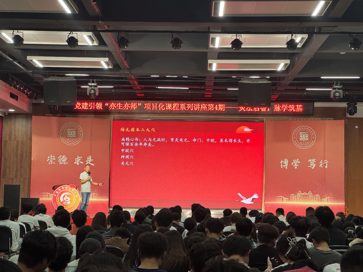 2025年11月6日,圖書館八樓暖意融融、座無(wú)虛席,中醫(yī)藥學(xué)院黨建小組聯(lián)合中醫(yī)藥應(yīng)用研究所精心打造的黨建引領(lǐng)“亦生亦師”項(xiàng)目化課程系列講座在此順利啟幕。作為中華優(yōu)秀傳統(tǒng)文化的璀璨瑰寶,中醫(yī)藥文化承載著千年先民的健康智慧,而艾灸與脈診更是其中歷經(jīng)歲月沉淀的核心技藝。本次講座以黨建為引領(lǐng),搭建起“師生共建、教學(xué)相長(zhǎng)”的交流平臺(tái),旨在讓青年學(xué)子近距離感受中醫(yī)藥的獨(dú)特魅力,傳承經(jīng)典、啟迪新知,為中醫(yī)藥文化的當(dāng)代傳播注入青春活力。