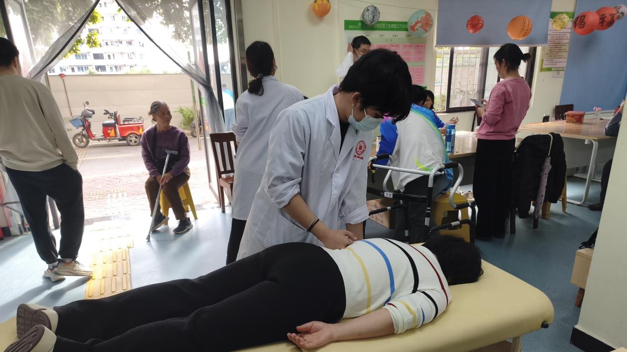 中醫(yī)調(diào)理體驗(yàn)區(qū)則提供艾灸、推拿按摩等特色服務(wù),學(xué)員可根據(jù)自己的需要進(jìn)行體檢。志愿者們手法嫻熟的理療服務(wù),緩解了學(xué)員因行動(dòng)不便引發(fā)的肌肉酸痛問題,贏得大家一致好評(píng)。