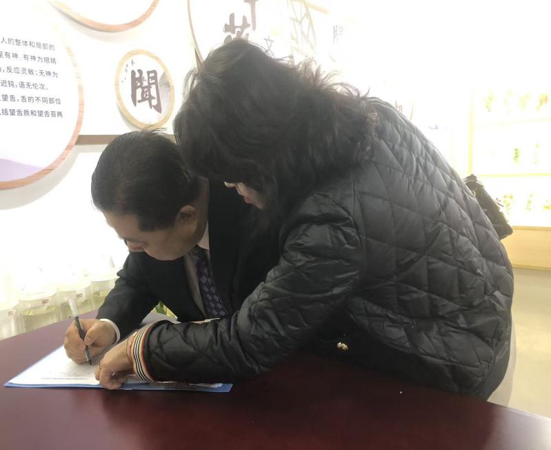 圖2 韓國(guó)新慶州大學(xué)代表團(tuán)參觀中藥標(biāo)本館簽名