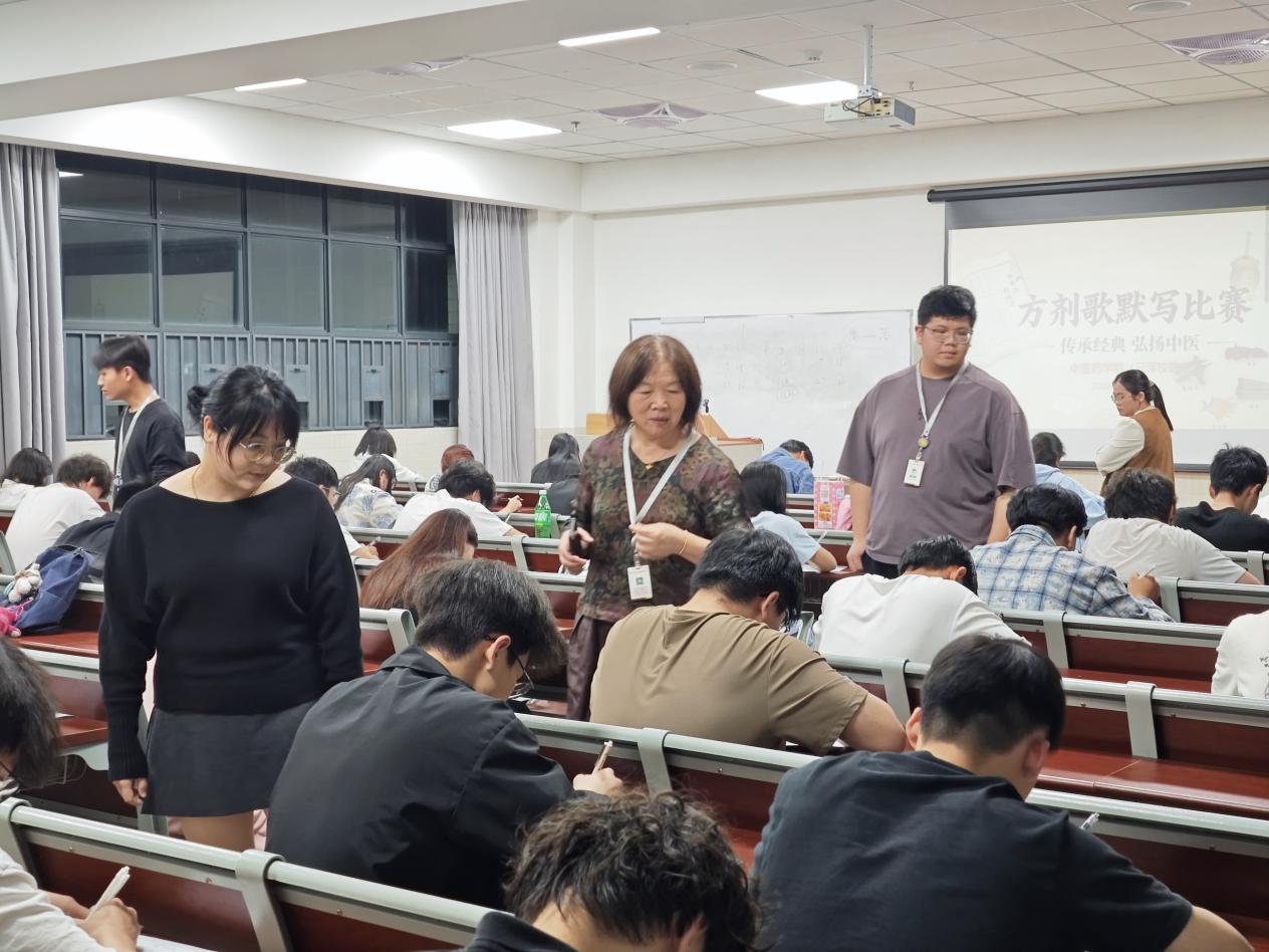 為深入弘揚(yáng)中華優(yōu)秀傳統(tǒng)文化,夯實(shí)學(xué)生專業(yè)基礎(chǔ),激發(fā)學(xué)生學(xué)習(xí)中醫(yī)藥經(jīng)典的熱情,2026年3月18日晚,中醫(yī)藥學(xué)院(云浮校區(qū))舉辦方劑訣默寫比賽。以賽促學(xué)、以寫固知,營造濃厚的中醫(yī)藥學(xué)習(xí)氛圍。團(tuán)委副書記宋依謎副教授蒞臨現(xiàn)場觀摩指導(dǎo)。