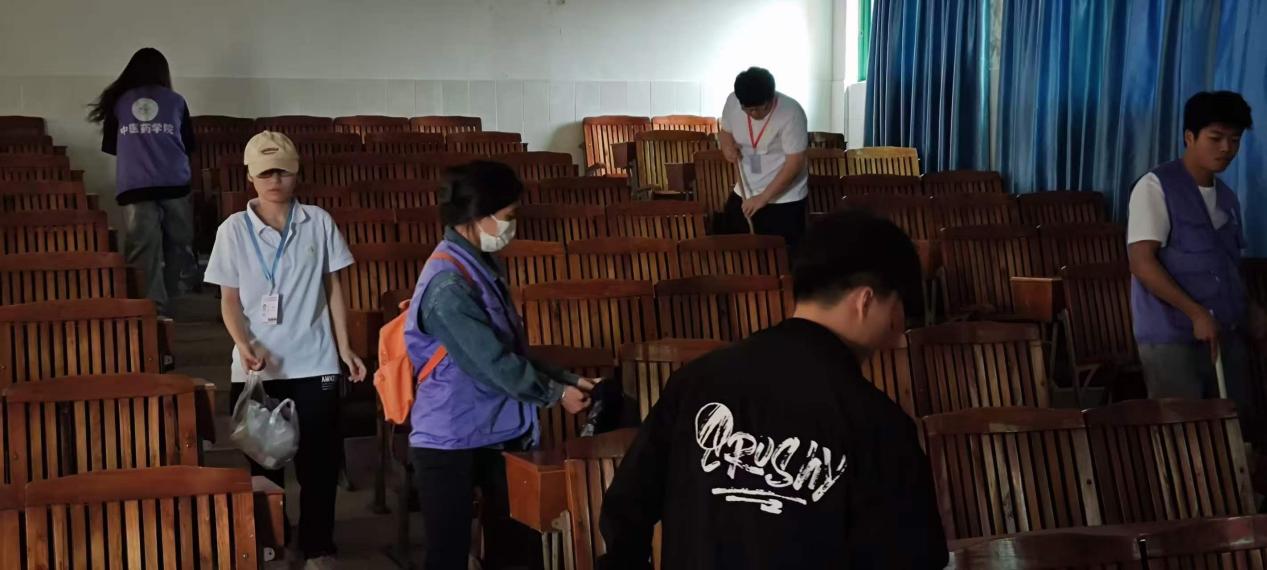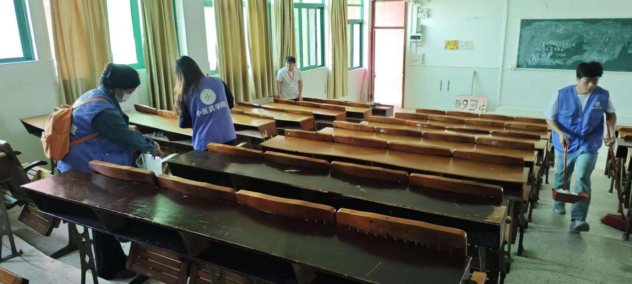 志愿者們清掃教室
