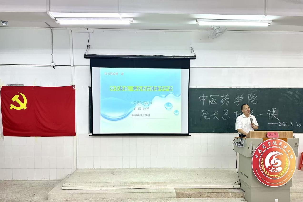 為深入貫徹黨的二十大及二十屆四中全會(huì)精神,落實(shí)“健康優(yōu)先發(fā)展戰(zhàn)略”,2026年3月26日中醫(yī)藥學(xué)院院長(zhǎng)王暉教授以“夯實(shí)基礎(chǔ),做合格的健康守護(hù)者”為主題,在圖書(shū)館304教室為學(xué)院師生開(kāi)講新學(xué)期思政第一課。課程緊密?chē)@國(guó)家衛(wèi)生健康工作方針,深度結(jié)合中醫(yī)藥特色優(yōu)勢(shì),引導(dǎo)青年學(xué)子堅(jiān)定專(zhuān)業(yè)信念、筑牢專(zhuān)業(yè)根基、厚植為民情懷,立志成為新時(shí)代人民健康的忠誠(chéng)守護(hù)者。