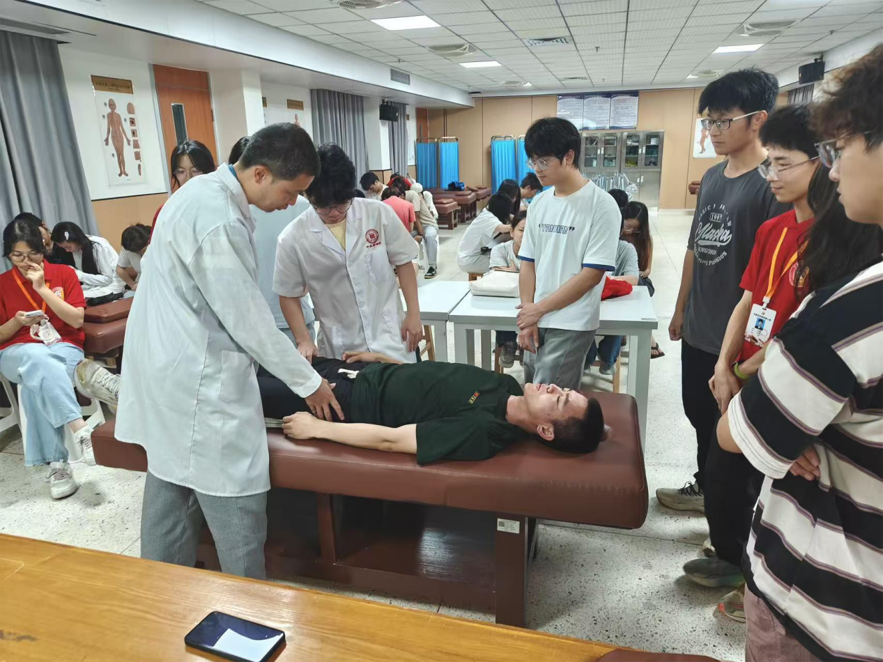 為增強學習效果,講座特別設(shè)置了互動實操環(huán)節(jié)。在潘菽弢博士的專業(yè)指導下,同學們分組展開練習,輪流擔任操作者與體驗者,在互助切磋中交流手法心得、修正操作偏差。現(xiàn)場學習氣氛濃厚,同學們積極提問、反復練習,真正實現(xiàn)了“教中學、學中教”的雙向成長。