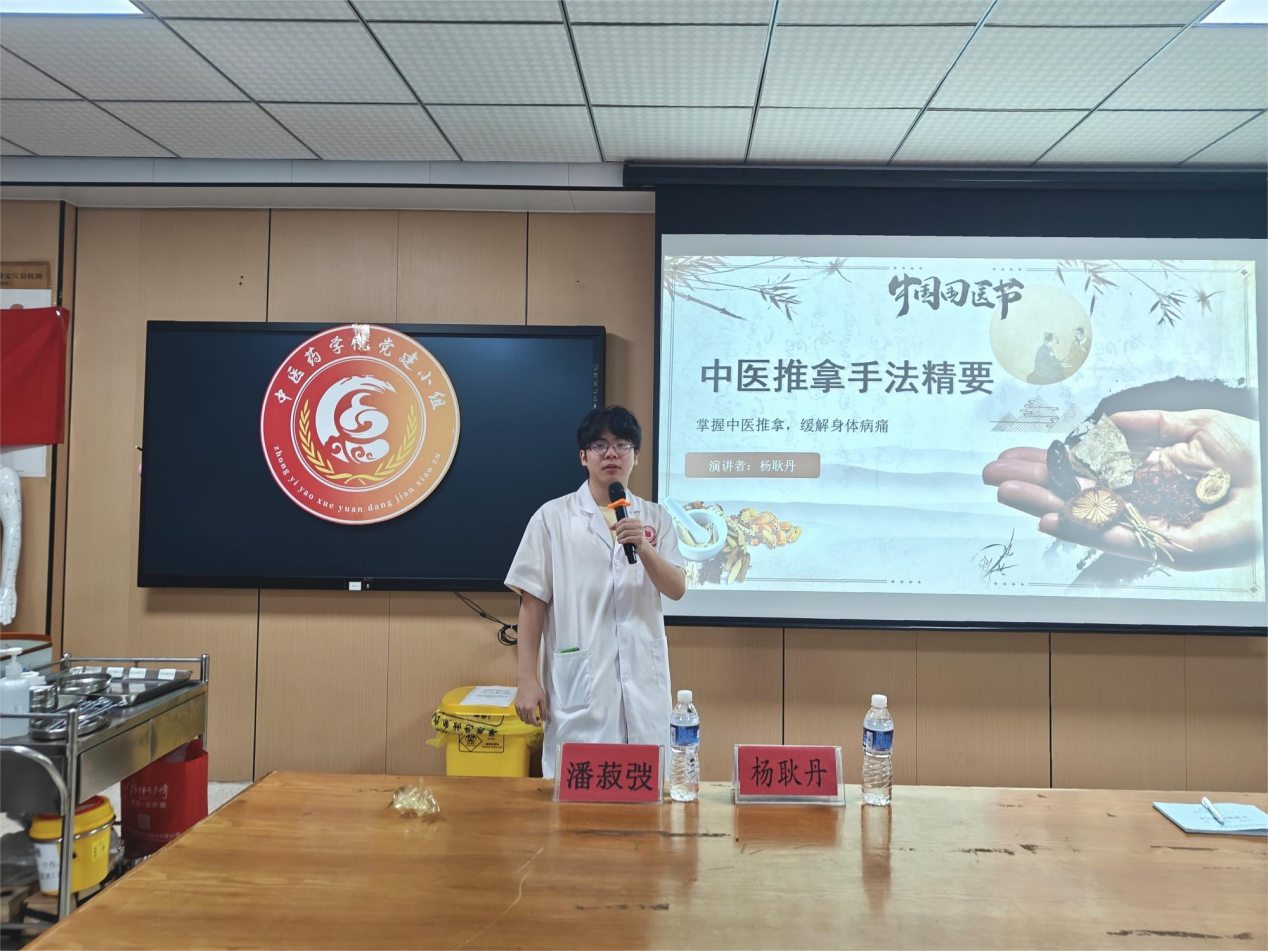 2026年4月16日晚,由中醫(yī)藥學院黨總支主辦,黨建小組與中醫(yī)藥應(yīng)用研究所聯(lián)合承辦的黨建引領(lǐng)“亦生亦師”項目化課程系列講座第九期,在西二教學樓104實訓室圓滿舉辦。本期講座以中醫(yī)手法推拿精要為核心主題,特邀楊耿丹同學擔任主講,采用“理論精講+現(xiàn)場示范+分組實操”的沉浸式教學模式,帶領(lǐng)在場學子深度體悟中醫(yī)推拿的科學內(nèi)涵與實用價值。